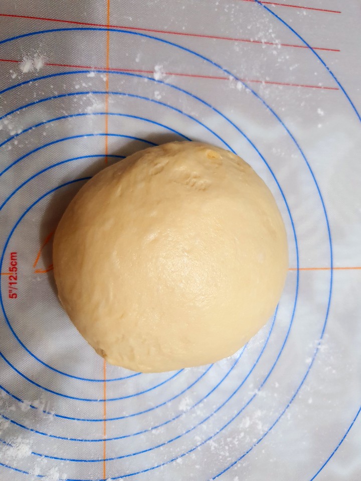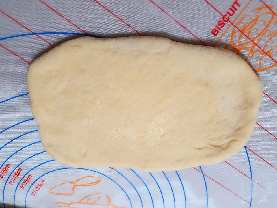 3.2배로 부풀면 3등분 분할해서 둥글리기 해준후 15분 둔다.