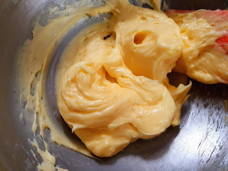 풀어둔 달걀을 조금씩 4번나누어 넣으면서 크림화 시켜준다.