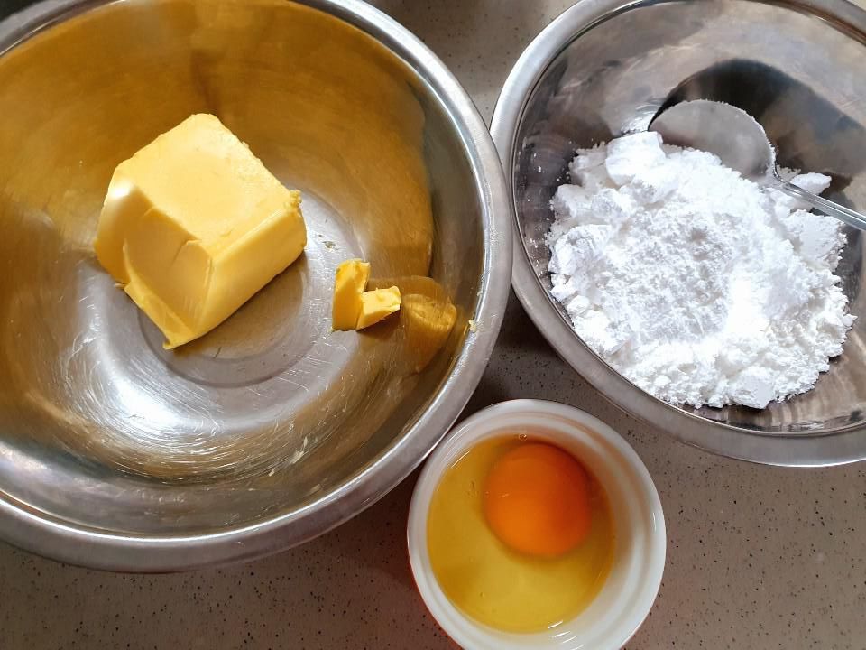 버터 150g, 슈가파우더 120g, 달걀 1개, 소금 조금