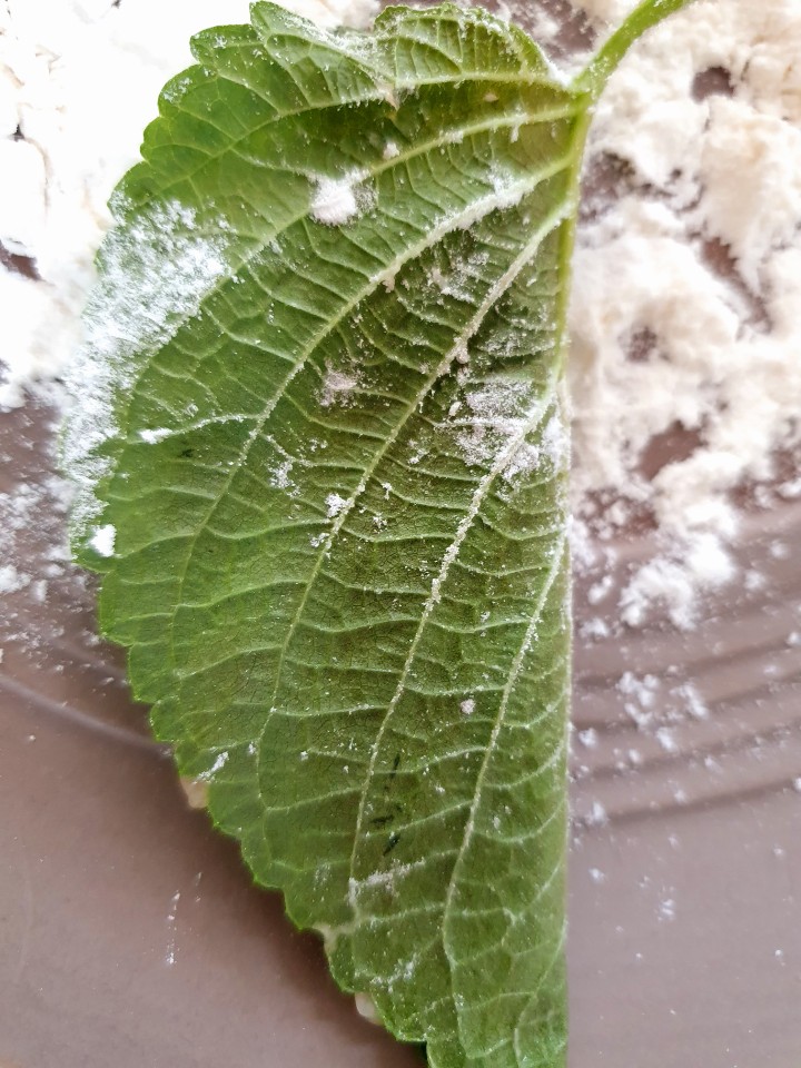 5. 깻잎도 밀가루 살짝 묻힌 후 양념소를 한쪽면만 넣어준 후 반대편으로 덮어준다.