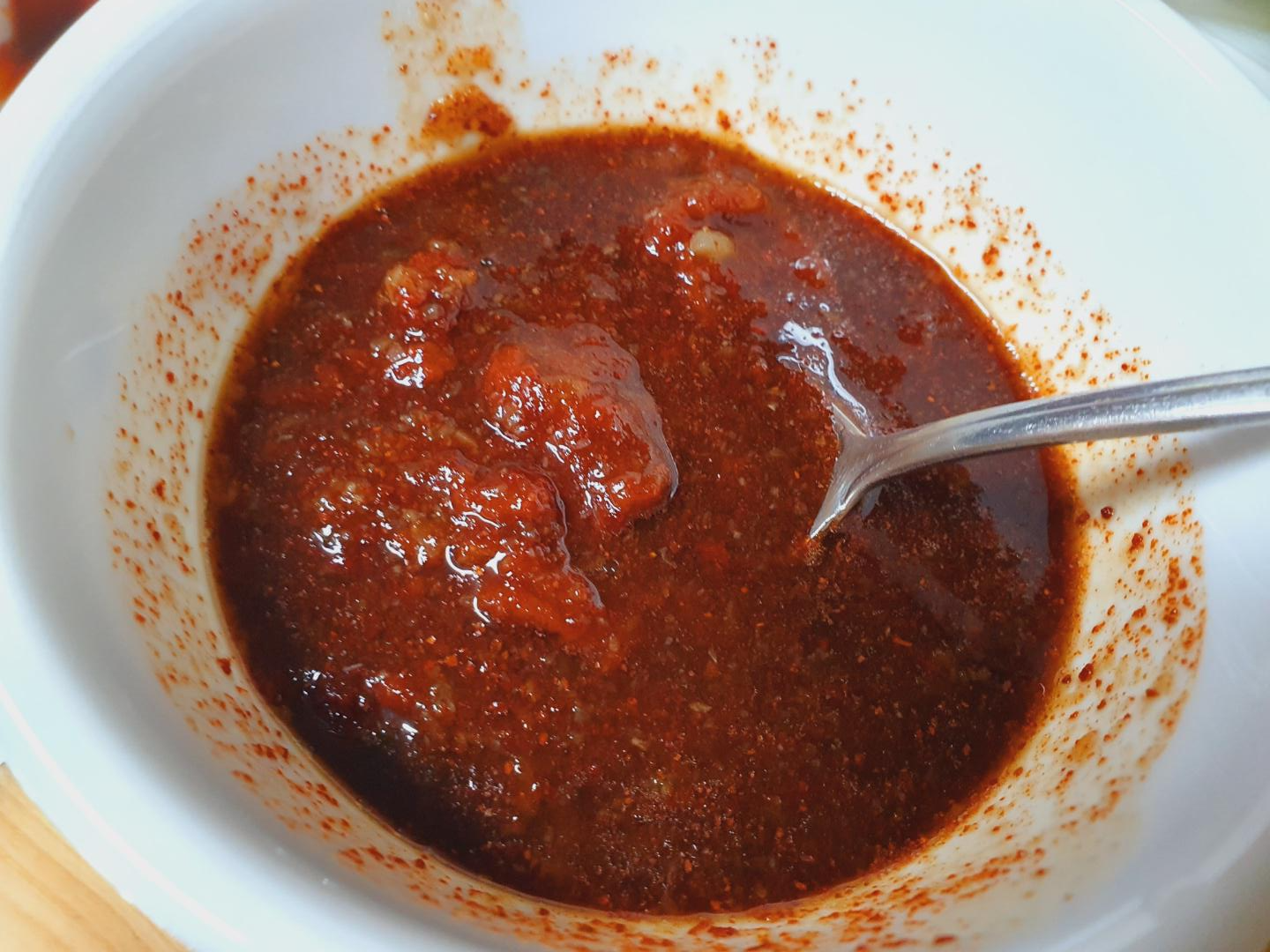 전 양념장을 조금 남겼어요.