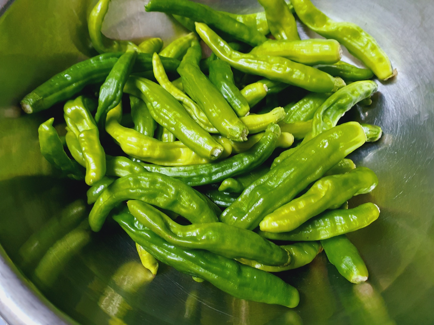 시골 장날이라 좋아하는 꽈리고추 한 바구니 사서