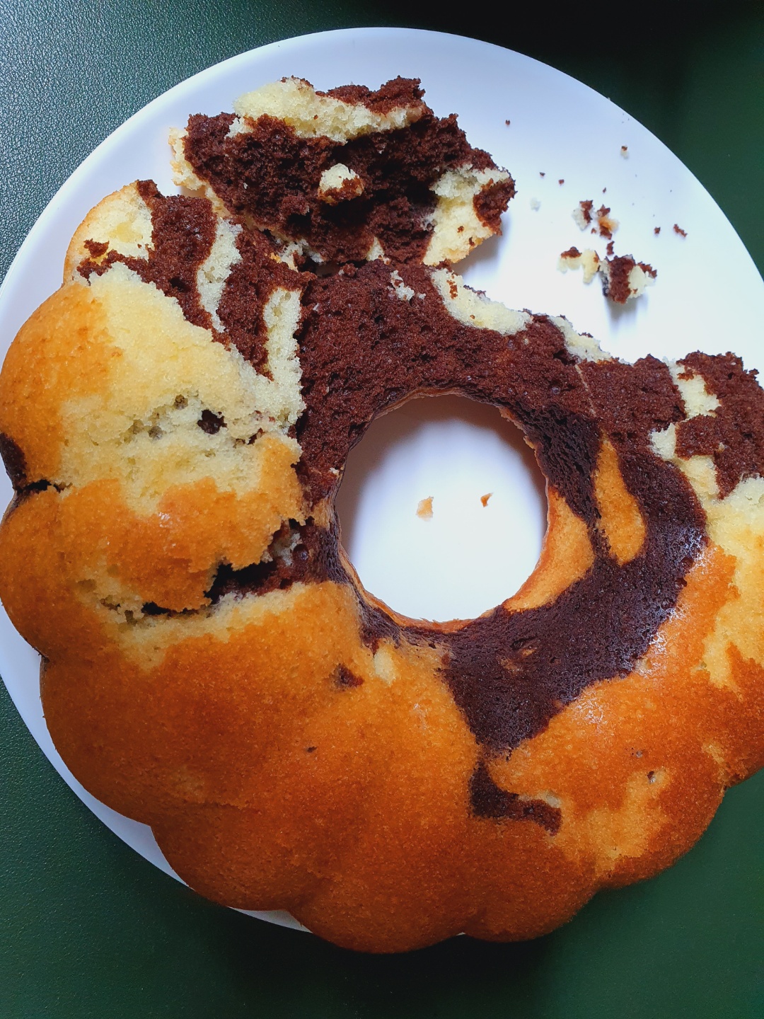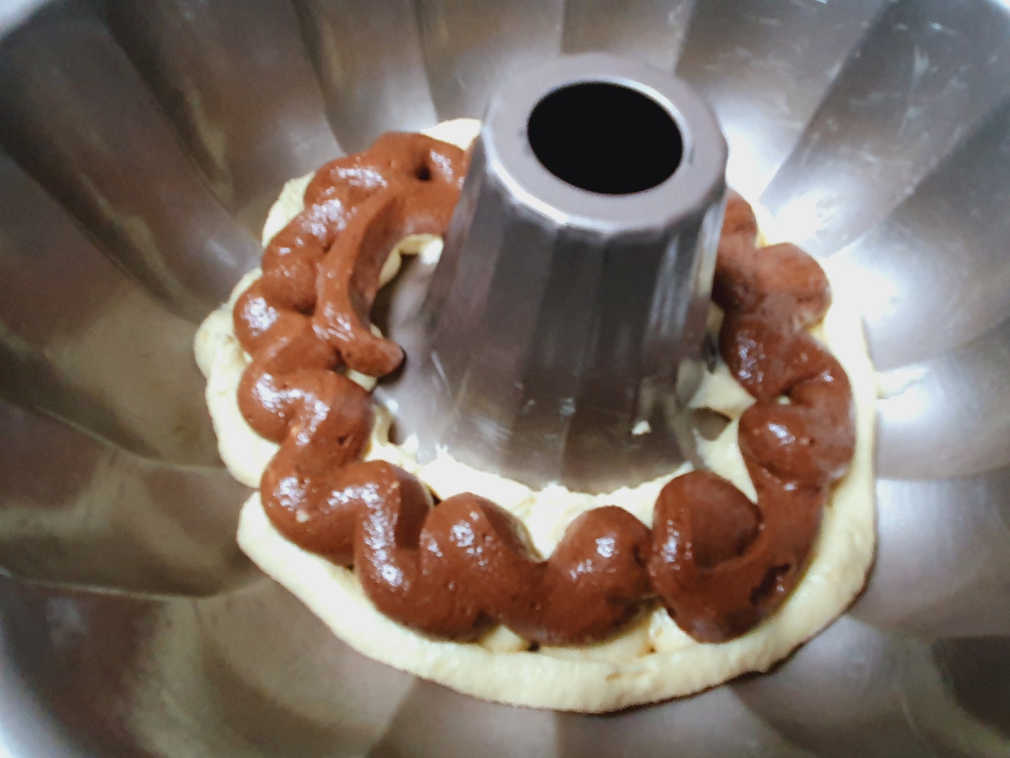 7. 틀에다 바닐라 반죽, 초코 반죽, 바닐라, 초코, 바닐라 순으로 넣어준 후 위에를 정리해준다.