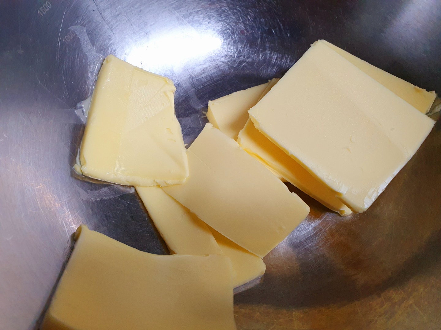 2. 볼에 상온의 버터 , 소금, 설탕 3번 나누어 넣어주며 휘핑해준다.