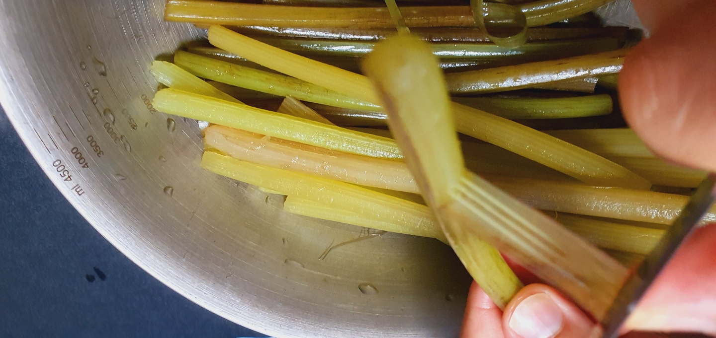 머위대는 큰 부분은 반나누어서 잘라주었어요.